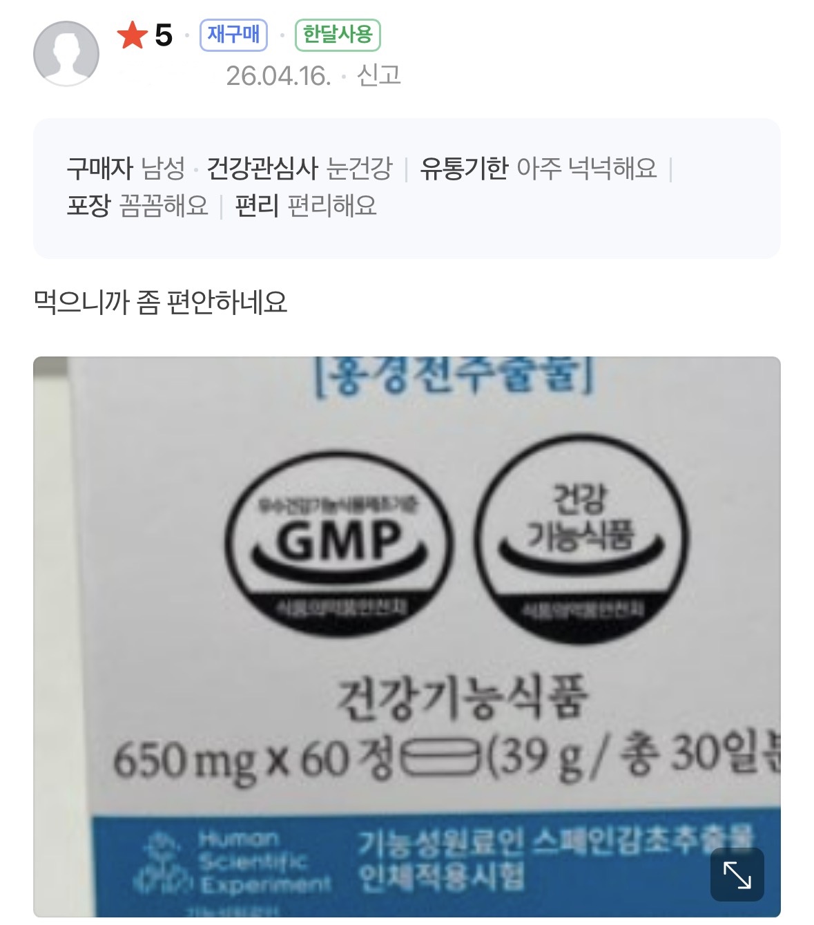 더불어 해당 제품은 식약처로부터 기능성과 안전성 검증을 거친 건강기능식품에 해당한다는 점도 주목해볼 만한 부분이예요.