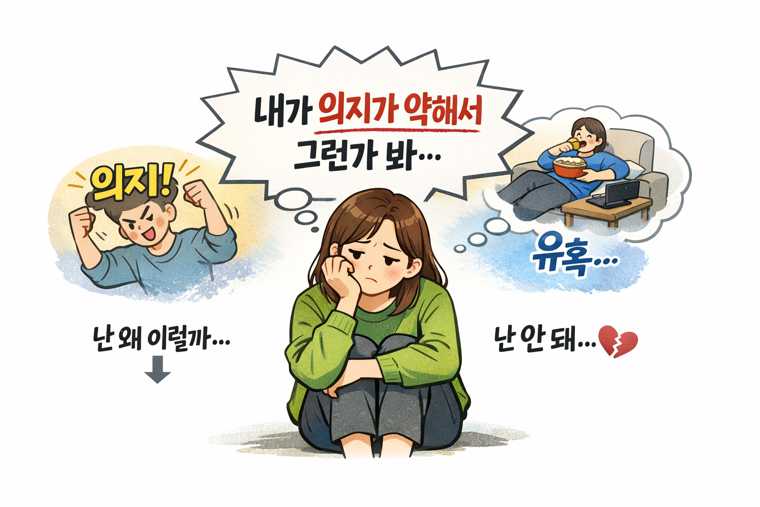 바로 “내가 의지가 약해서 그렇다”라고 생각하는 점입니다.